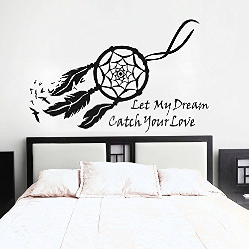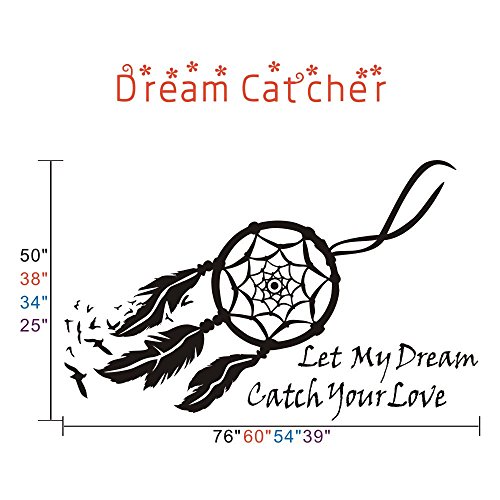 MairGwall Dream Catcher Wall Decal Native American Feathers Bedroom Wall Sticker (Small, Black)