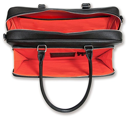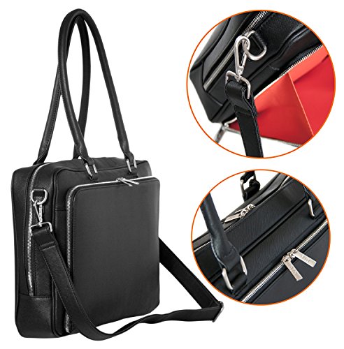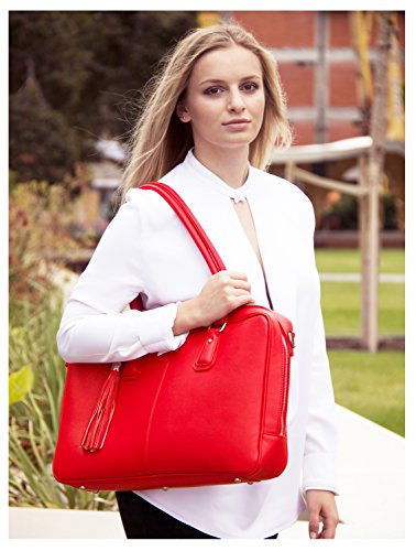 -. Feature : DESIGNED BY A WOMAN - The Melinda Laptop Bag is Stylish and Fashionable - 2 Padded sections for Laptops, Tablets, iPads, Kindles, large Smart Phones: Interior padded Laptop Sleeve and a large exterior padded Pocket - AIRPORT FRIENDLY AND IDEAL FOR TRAVEL / NO MORE ACHING SHOULDERS - Gorgeous Faux Textured Leather with colorful lining - Signature BfB tassel for glamor and quality - Brushed Nickel Hardware - Hand Made to ensure each bag is LIGHTWEIGHT AND DURABLE / BE AMAZED how much this bag holds - 3 x inside side pockets for cell phones, sunglasses, business cards, credit cards etc PLUS handy clip for your keys so you never lose them again - Plus additional section for Credit Cards/Business Cards and Pens in front zippered sleeve - BEAUTY AND BRAINS COMBINED. / Approx Size: 17.5inches W x 12inches H x 3inches D - Handle Drop 10 inches to comfortably fit over your shoulder PLUS detachable shoulder strap to be hands-free - PLEASE MEASURE YOUR LAPTOP BEFORE PURCHASE: Inside Laptop Sleeve: 16 Inches wide - Exterior Zippered Sleeve: 16 Inches - THE ONLY BAG YOU NEED ON A BUSY WORKING DAY / Every Handbag from My Best Friend is a Bag is HAND MADE with 100% MANUFACTURERâ€TMS GUARANTEE AGAINST FAULTY WORKMANSHIP - ORDER NOW with absolute peace of mind - Look Professional - The BEST INVESTMENT YOU'LL MAKE IN YOUR BUSINESS WARDROBE