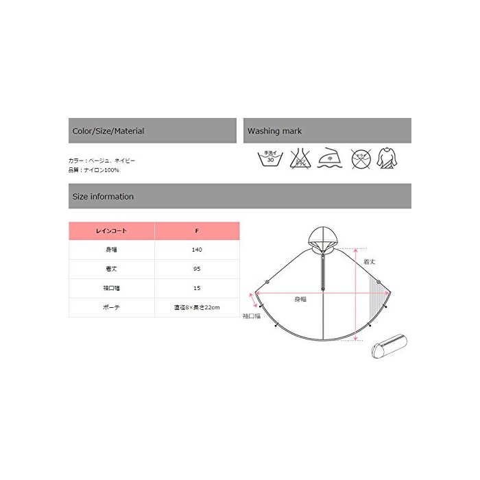 사이즈(cm): F(옷길이140,옷 길이95,소매끝폭15) 파우치(직경8×길이22)