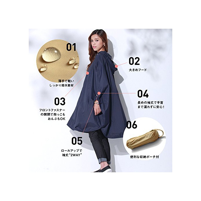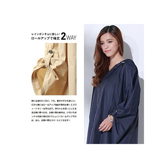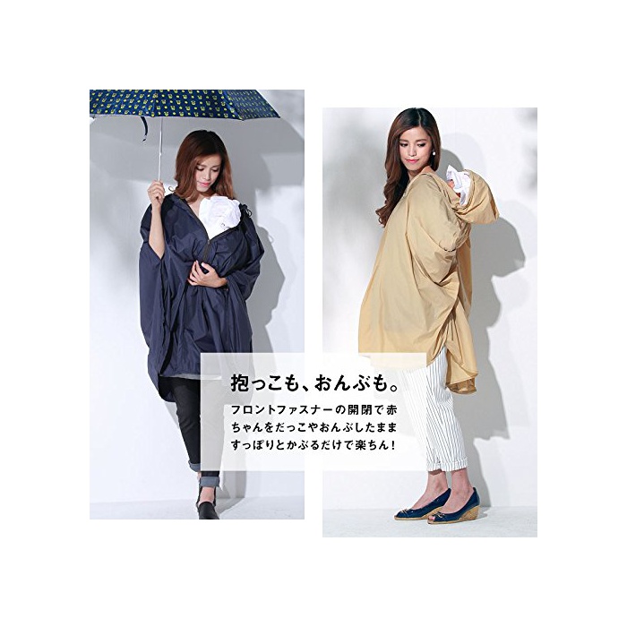 스위트마미 (Sweet Mommy) 포옹 어부바 대응 소매 길이 2WAY 레인 판초 남녀 겸용 레인 코트 / 싸이클 코트 네이비