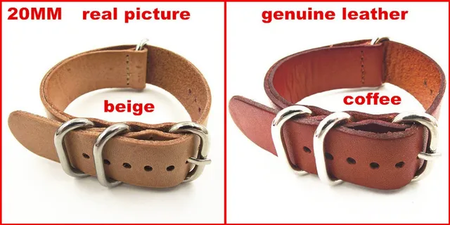 새로운 도착- 1 개 고품질 20mm 나토 끈 진짜 가죽 시계 밴드 스트랩 나토 시계 끈 크기: 20mm 길이: 25.8cm 폭: 20mm 어떤 색상 하시겠습니까? 메시지를 남겨주세요, 우리는 귀하에게 보내드립니다