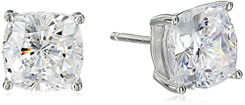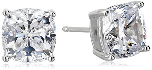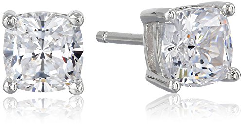 -. Title : Platinum-Plated Sterling Silver Cushion-Cut Cubic Zirconia Stud Earrings