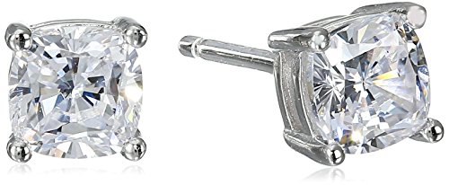 -. Feature : Platinum-plated sterling silver post earrings featuring cushion-cut cubic zirconia stud and friction-back findings / Imported