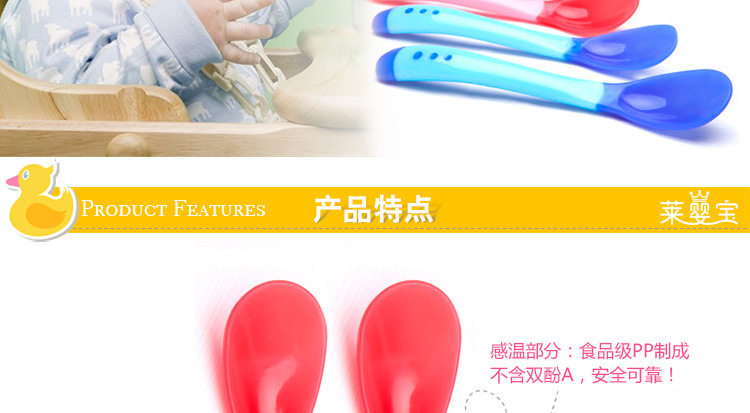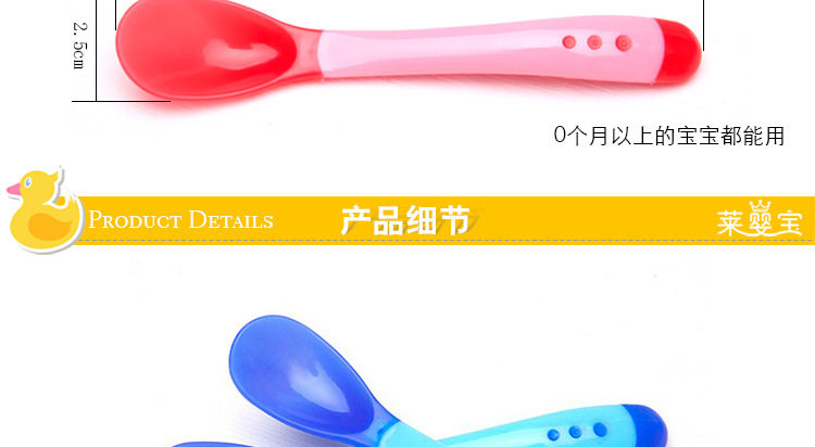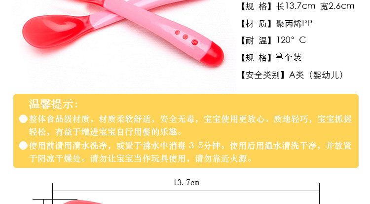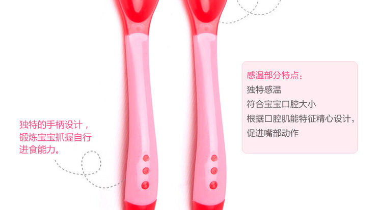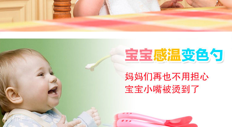 u0026nbsp;用途:专为婴幼儿喂食勺头不同的造型,可以根据宝宝的成长阶段更换哦!前面浅色的那圈是软头的,遇到温度达到40℃时会变色,并且可以多次重复使用。给宝宝用再适合不过了呢!u0026nbsp; u0026nbsp; u0026nbsp;