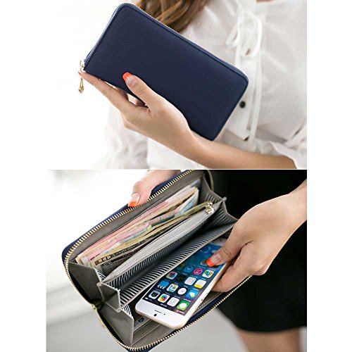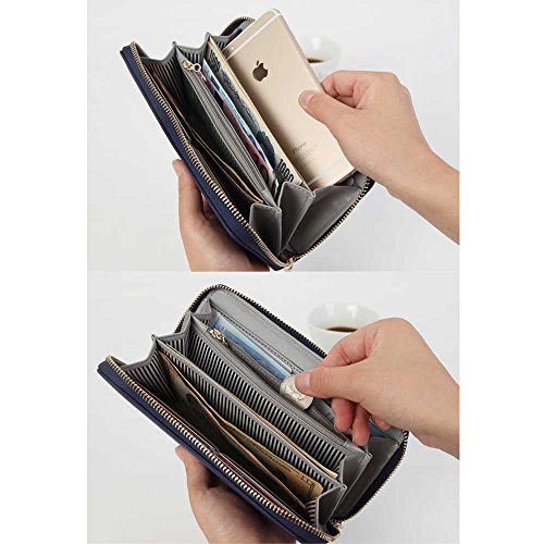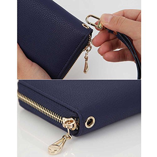 -. Title : Women's Genuine Leather Purse Long Organizer Wallet with Wrist Strap Clutch Wristlet