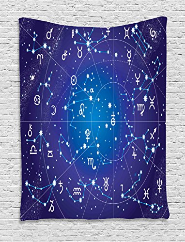 Astrology Decorations Tapestry By Ambesonne, Constellation Of Zodiac And Planets Original Collection Coordinates Of Celestial, Bedroom Living Room Dorm Decor, 40Wx60L Inches, Dark Blue