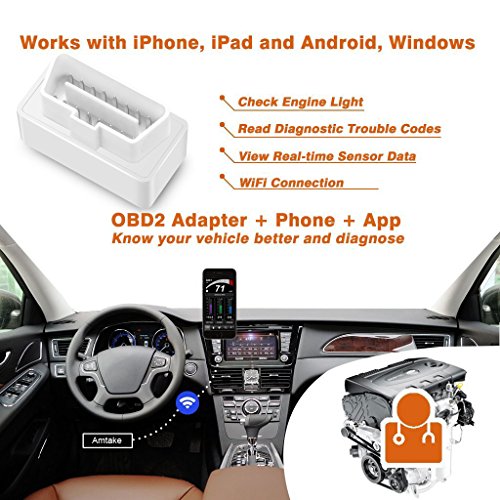 Amtake WiFi OBD2 Scanner OBD Adapter Auto Car Diagnostic Scan Tool Check Engine Light Read and Clear Error Code Reader for iPhone, iPad, Android