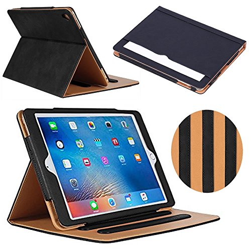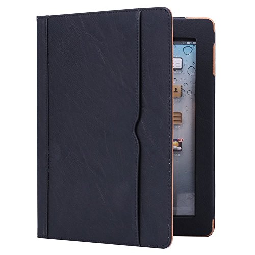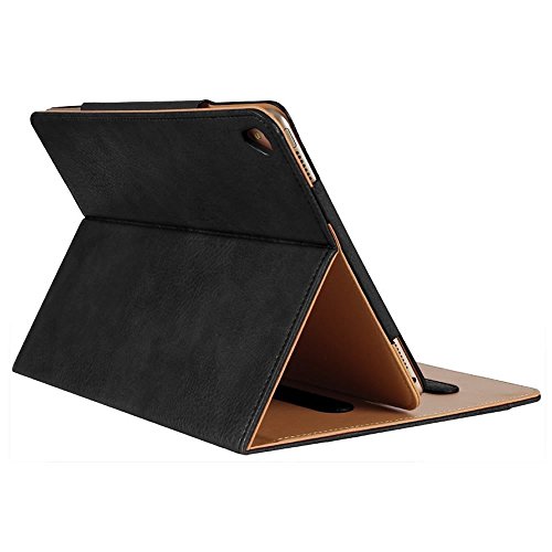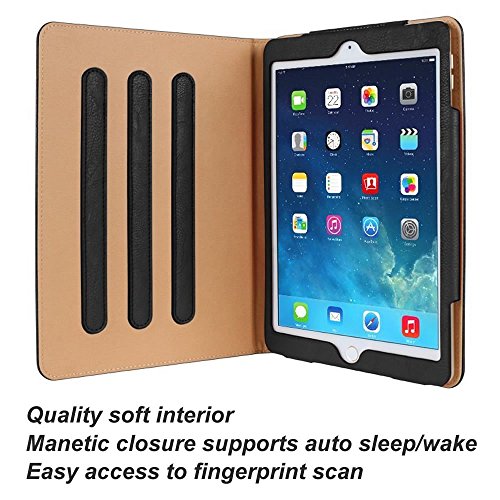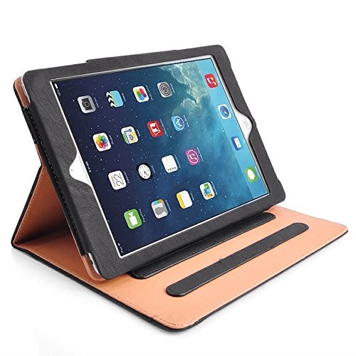 iPad Air 2 Case, AUCEE Ultra Slim Light Weight Sleep Awake Smart Leather Stand Folio Flip Case Cover with Document Card Pocket , Multiple Viewing Angles for Apple iPad Air 2 (iPad 6) - Black