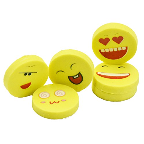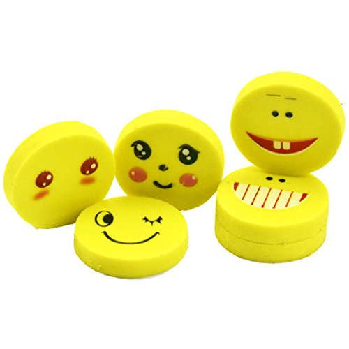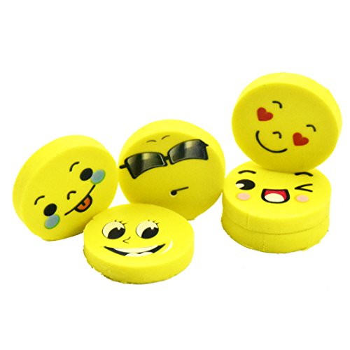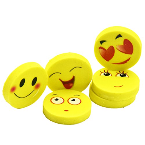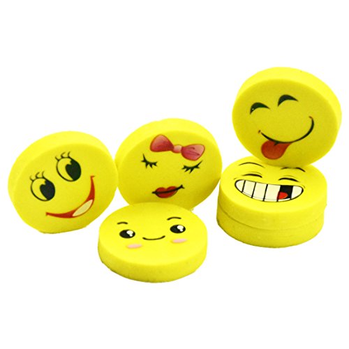 BUSHIBU 36Pcs Yellow Color Round Emoji Face Erasers(Random delivery combination expression)