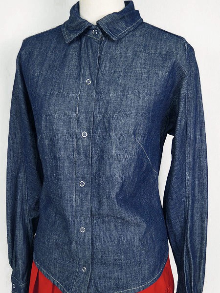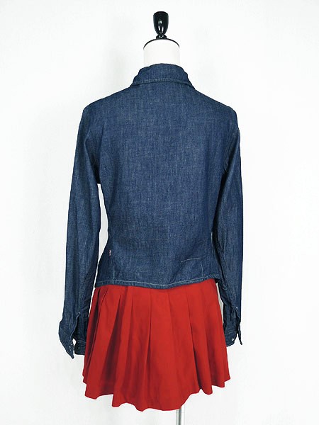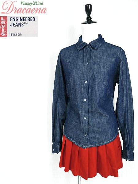 Ladies ブランドLevis リーバイス カラー紺 メール便不可 コンディション★★★ 素材コットン85%・テンセル15% 表記サイズM スタッフコメント濃紺、シンプルなデニムシャツ、後ろが短くなっているデザイン。1枚あると重宝するアイテムです。 実寸サイズ 着丈 60/48.5 cm 身幅 44 cm 肩幅 37.5 cm 袖丈 60.5 cm ※ウエスト・ヒップ以外は平置き採寸