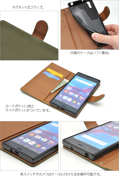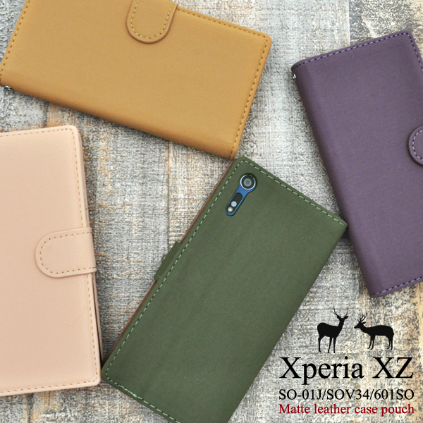マットな質感のレザーを使用した、Xperia XZ用マットレザーケースポーチ。