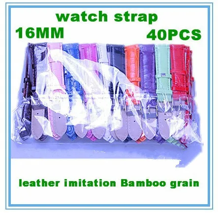 도매 많은 40 개 16 미리메터 시계 스트랩 가죽 모조 대나무 곡물-10 색상 가능-낮은 가격 3171