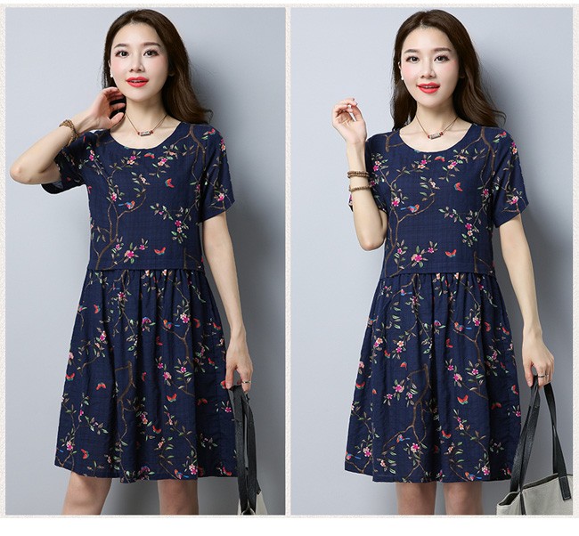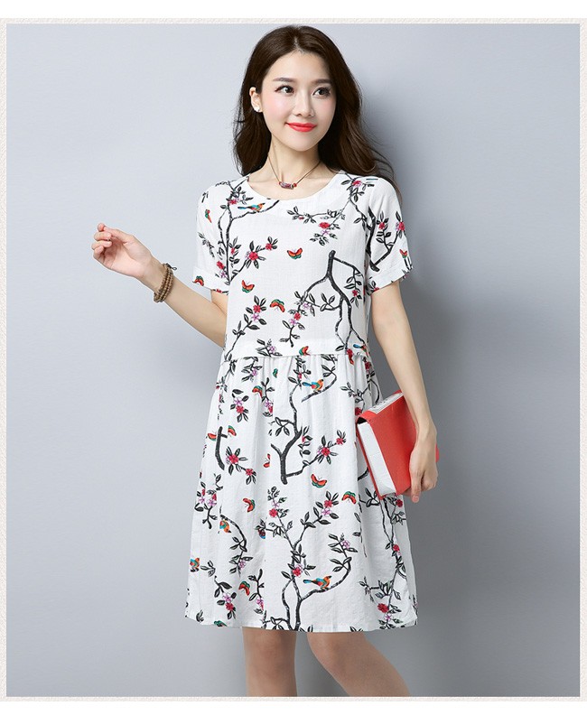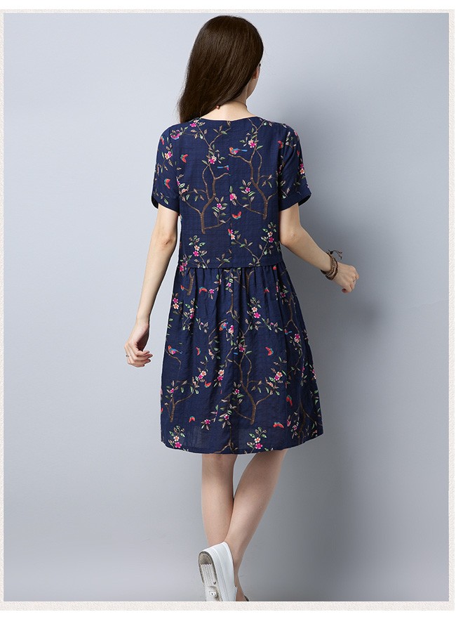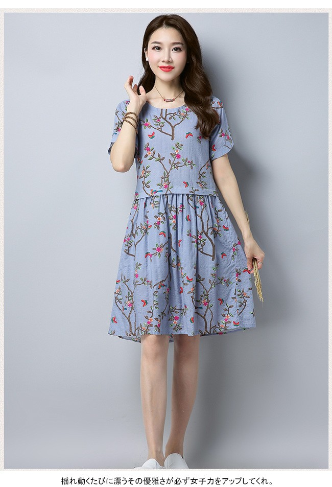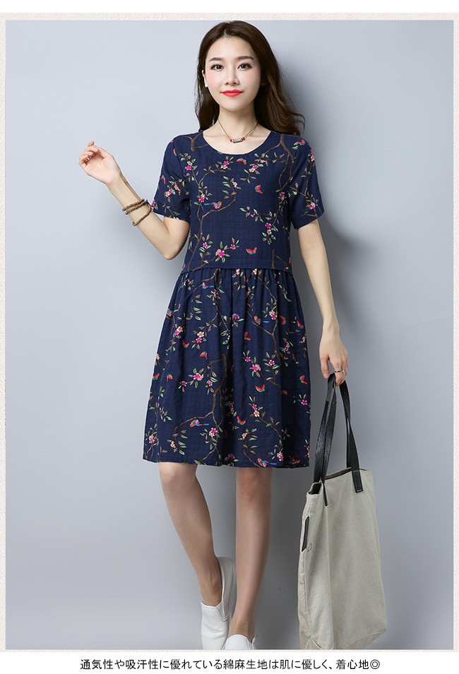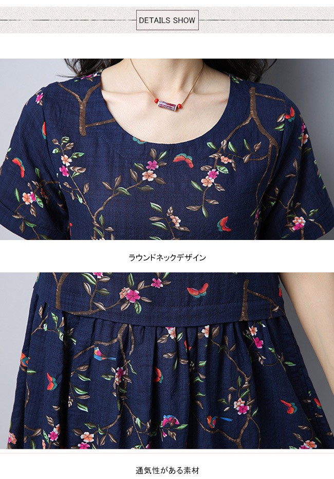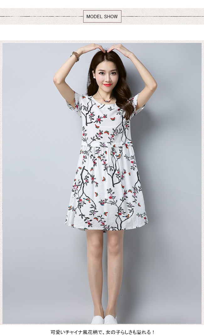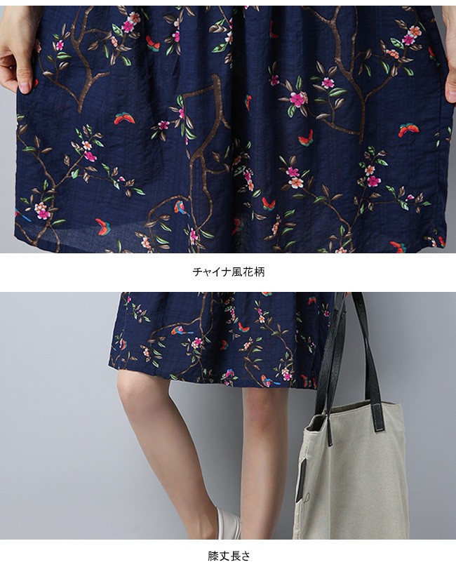 | 商品名 | チャイナワンピース 綿麻ワンピース 森ガール風ワンピース レディース ミディアムワンピース 膝丈 花柄 半袖 中国風 ふんわり サマー |
