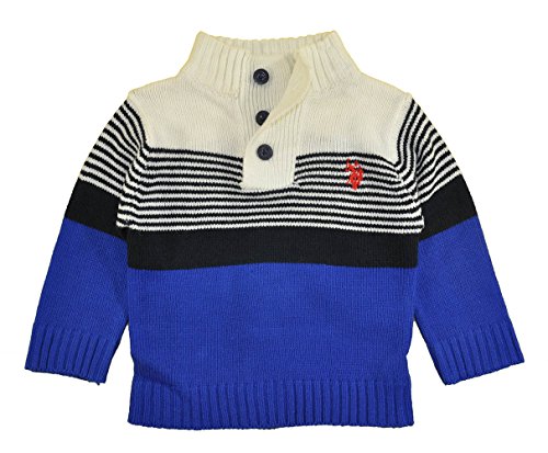 -. Title : US Polo Assn Baby Boys Cream & Blue 3 Button Sweater 3pc Denim Pant Set