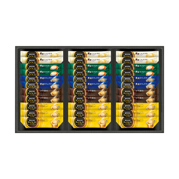 ●ゴールドブレンド濃厚ミルクラテ7g・ゴールドブレンド濃厚カプチーノ7g・ゴールドブレンドコク深め6.6g・ゴールドブレンド豊潤カフェラテ8.3g×各6、ゴールドブレンド6.6g×9