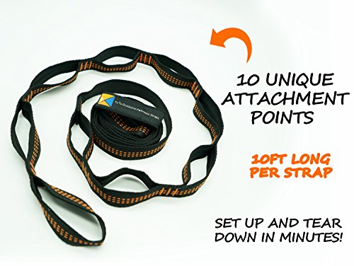 - Made of 100% high quality soft silky touch, smooth and breathable woven nylon and features premium polyester non-stretch tree straps with build-in loops. It ensures you a knotless hammock and reduce your efforts on tree rope knotting, lightweight aluminum wiregate carabiners which ensures optimal weight distribution and incredible comfort, as well as durability. Reinforced edges make the material extremely tear-resistant.