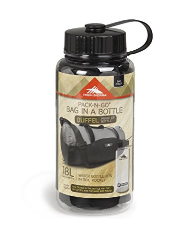 -. Brand : High Sierra -. Department : unisex-adult -. Feature : 18 liter, main compartment with large, zippered opening / Single fabric side pocket holds1000ml bottle (one 1000ml bottle included. / Large, adjustable over-shoulder webbing strap / Dual top webbing carry handles / Lage: Lightweight packable expandable bag -. Label : High Sierra -. Manufacturer : High Sierra -. NumberOfItems : 1 -. PackageQuantity : 1 -. ProductGroup : Sports -. ProductTypeName : LAGE -. Publisher : High Sierra -. Size : One Size -. Studio : High Sierra -. Title : High Sierra 18L Packable Duffel In A Bottle