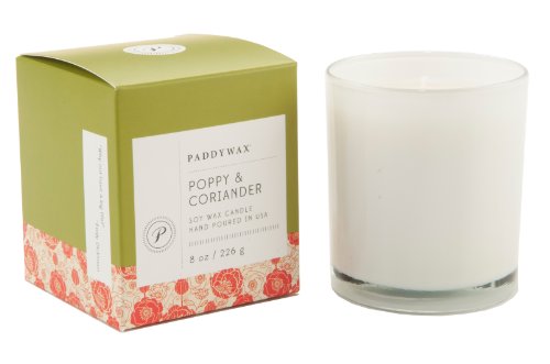 Paddywax Candles Happy Collection Glass Candle with Inspirational Quote, 8-Ounce, Poppy and Coriander