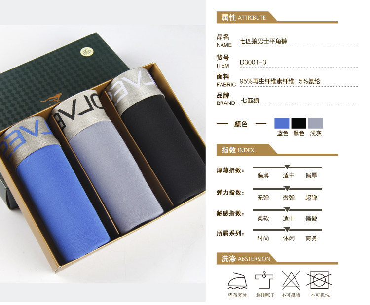 礼盒装七匹狼男士内裤男平角裤U凸底裤中腰四角裤透气舒适裤头