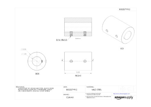 Climax Part RC-100-KW Mild Steel, Black Oxide Plating Rigid Coupling, 1 inch bore, 2 inch OD, 3 inch length, 5/16-18 x 1/2 Set Screw