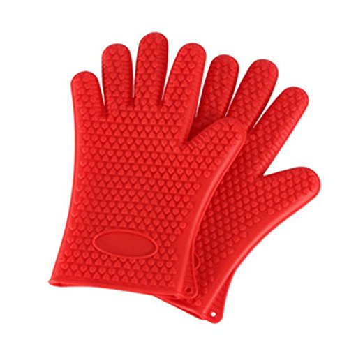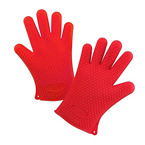 BBQ Oven Gloves | Best Versatile Heat Resistant Grill Gloves | Lifetime Replacement | Insulated Silicone Oven Mitts For Grilling | Waterproof | Full Finger, Hand, Wrist Protection (red)