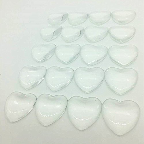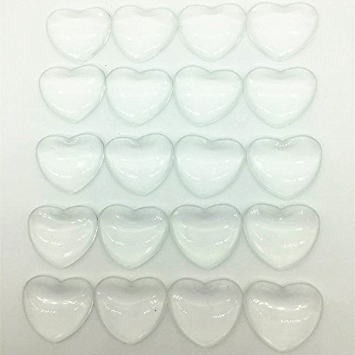 IGOGO 20 PCS Heart Glass Cabochons - 1 inch - 25mm - Clear Dome Magnifying Cabs
