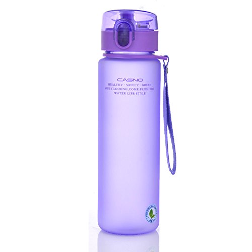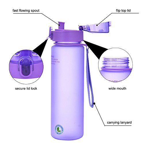 19oz Water Bottle with Straw, GTI Wide Mouth BPA-Free Leek proof Flip Top Lid Sport Plastic Bottle for Running Climbing Work-Purple