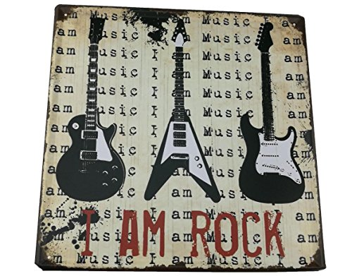 Vintage Retro Coffee Music Guitar Pattern Metal Tin Poster Sign Iron Plate Pub Hotel Bar Cafe Home Wall Decor(I Am Rock)