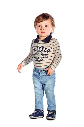 Title : Baby Boy Long Sleeve Bodysuit Striped Graphic Polo Jumpsuit 6-9 Months - Ivory