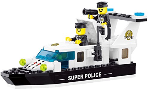 -. Title : Coast Guard 80 pcs building blocks super police set with speed boat, 3 action figure policemen, walkie talkie and speaker - your 6+ will never get tired of it, Compatible To Other Major Brands