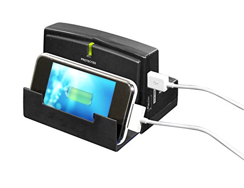 Yubi Power Desktop Power Charging Station - Mobile Device Holder - With 2 USB Ports and 3 AC Surge Protected Outlets