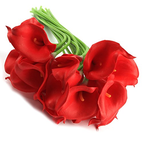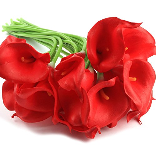 uxcell Artificial Flowers,Calla Lily Artificial Flowers Bridal Wedding Bouquet Head PU Real Touch Flower Bouquets Pack of 20 (Red)