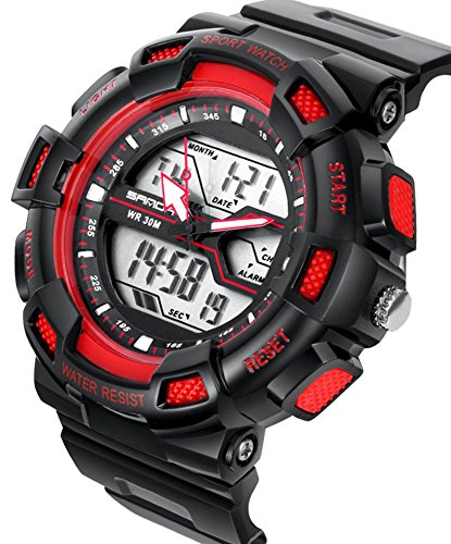 -. Title : DualTime Digital Analog Water Resistant Outdoor Sport Chronograph Wrist Watch for Kids Girls Black+Red