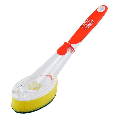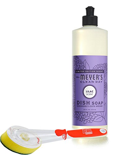 Mrs Meyer's Dish Soap Lilac 16 fl oz with a Brillo Scrub Brush