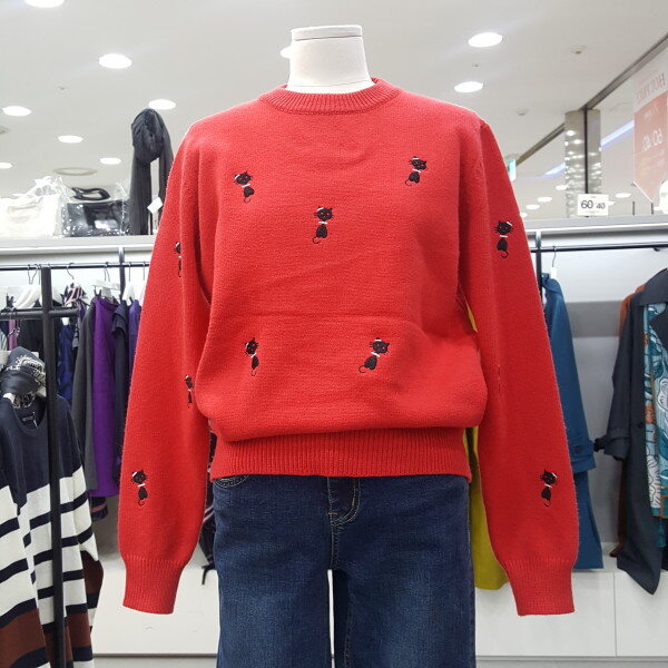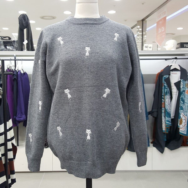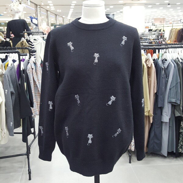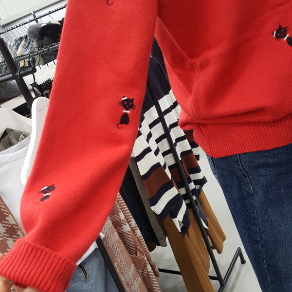 앙증맞은 고양이 자수가 포인트로 귀여운 라운드 니트입니다 베이직한 디자인에 자수포인트가 깔끔하고 청바지나 스커트 겨울엔 이너로 다양하게 코디 연출이 가능합니다