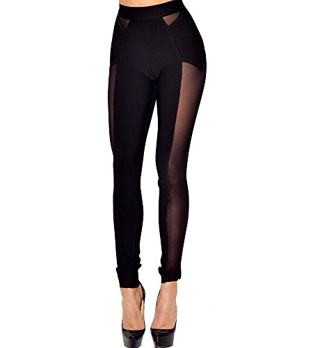 -. Title : Hego 婦人用 メッシュ パースペクティブ セクシー 伸縮 バンデージ ペンシル ブラック レギンス パンツ H4004