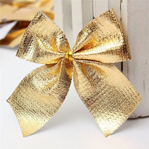 Package Including 24 * Christmas Tree Bow knots Festival Party Garden Ornament (Gold) 0