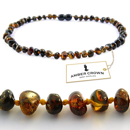 Amber Crown Teething Necklace for Babies, Greenish