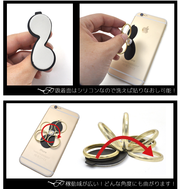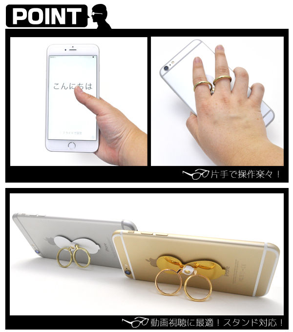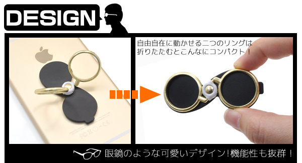 片手で楽々操作!2つのリングで安定感抜群!眼鏡型リングホルダー