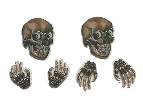 - Approximate size: Skull 6.5 x 5 inches, bony hands 4.5 x 3 inches.