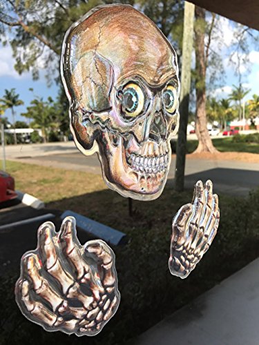 3D Skeleton Skull & Bony Hands Window Cling Sticker Scary Halloween Prank Decoration, Pack of 2