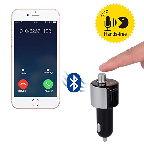 Triple Tree Bluetooth FM Transmitter,3.4A Dual USB Car Charger Car Kit|Hands-free Car Kit|MP3 Player with LED Display for iPhone,iPad, Android Cell Phone