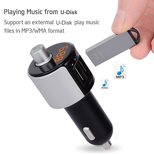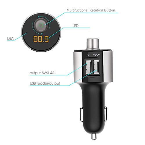 - 【Easy to Use】Just plug the Bluetooth FM Transmitter in the car cigarette lighter, control it and the car radio at the same frequency (frequency range from 87.5 to 108 Mhz).