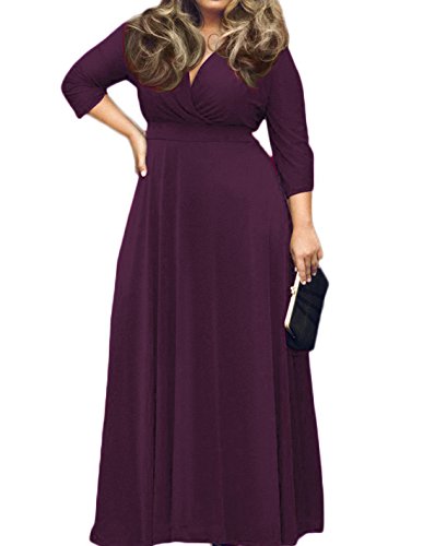 *Women sexy deep v-neck 3/4 sleeve dress party Navy casual loose plus the Maxi dress