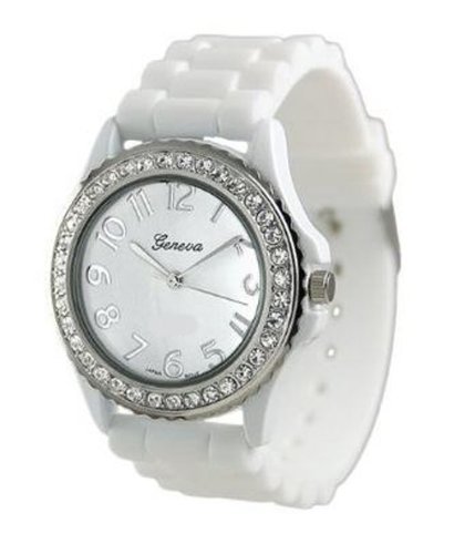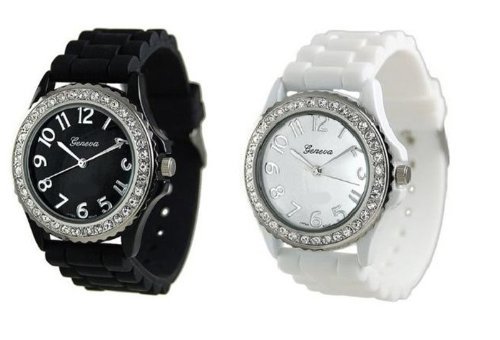 -. Binding : Watch -. Brand : Geneva -. Department : womens -. Feature : LARGER Design Silicone (rubber) Jelly watch band with crystal rhinestones surrounding the 1.75 INCH face! / This fashion watch features a stainless steel back / Quartz Japanese Movement! / Analog / Comfortable, fashionable, and fun! -. Label : Geneva -. Manufacturer : Geneva -. Model : 782045 -. MPN : gw1014Rub2WtBk1 -. PackageQuantity : 2 -. PartNumber : gw1014Rub2WtBk1 -. ProductGroup : Watch -. ProductTypeName : WATCH -. Publisher : Geneva -. Studio : Geneva -. Title : White Black 2 Pack Geneva Crystal Rhinestone Large Face Watch with Silicone Jelly Link Band