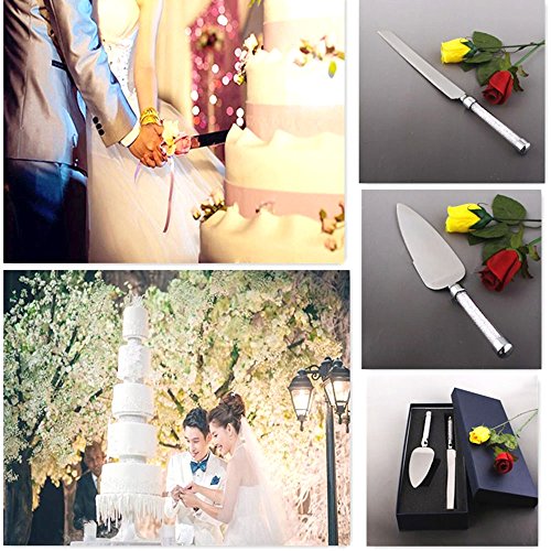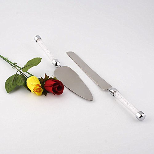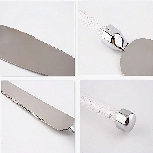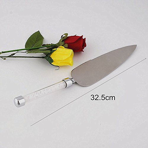 Product DescriptionStainless steel 18/8 cake knife and shovel serving set Color: SliverMaterial: Head:Stainless steel 18/8Handle:Acrylic and zinc alloy plating chromeThe handle filled with shiny crystalsSize:knife:L12.40 inches x W 0.78 inchesshovel: L 10.62 inches x W 2.75 inchesLength of the handle:4.33 inchesPackage: Gift box with soft foam.0