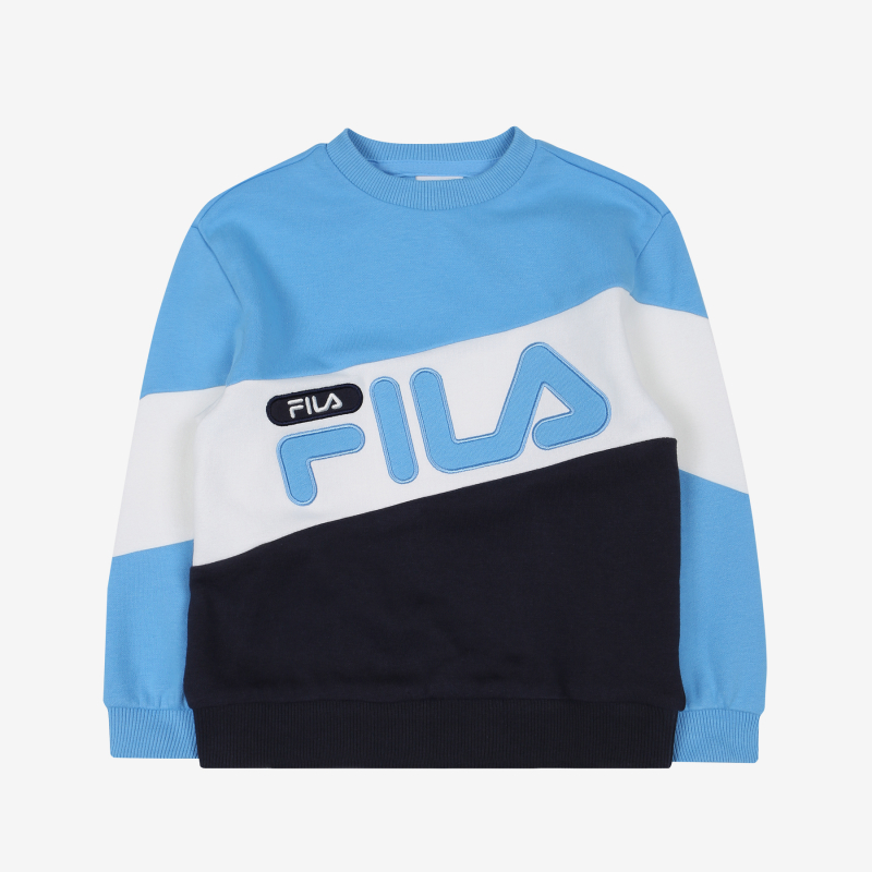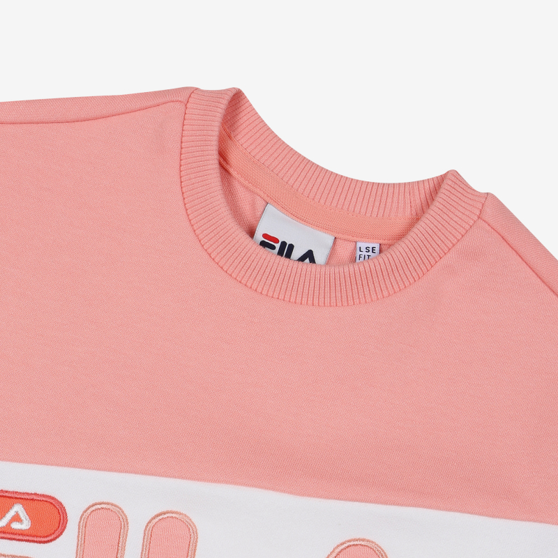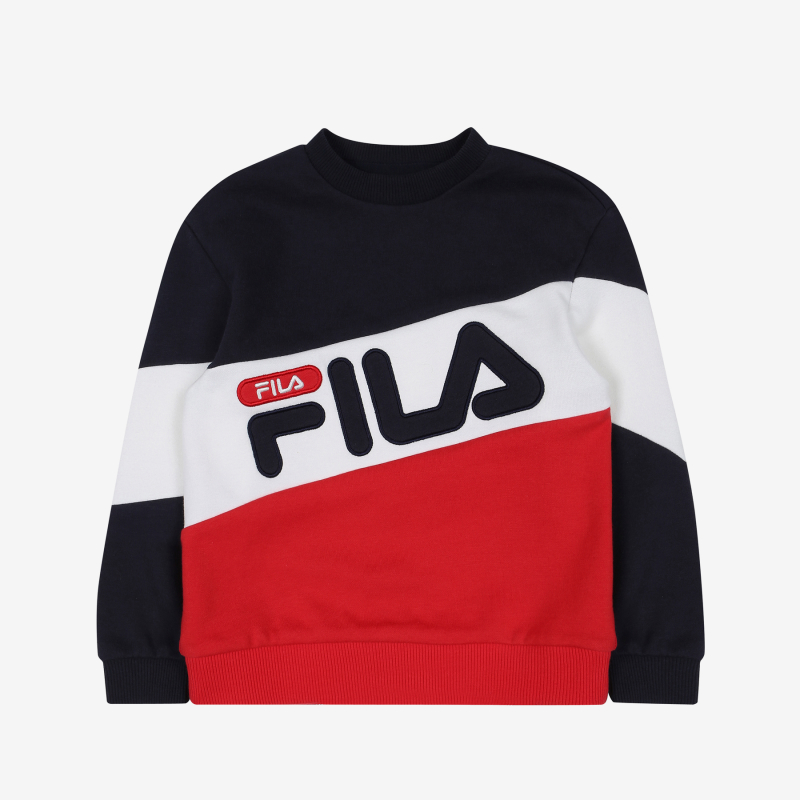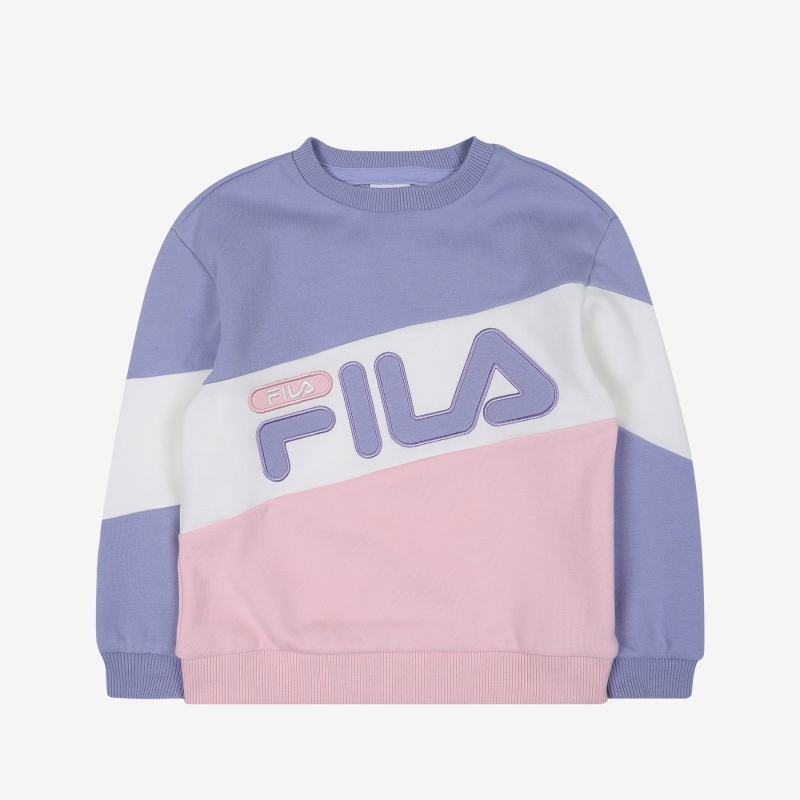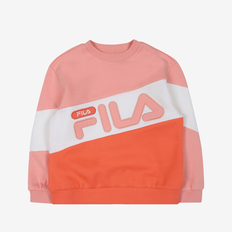 FILA KIDS 매 시즌 판매 베스트인 3단 블록 맨투맨.동성과 터치감이 좋은 기능성 소재 사용하여 야외활동시 간편하게 착용 가능한 아이템.로고를 아플리케 자수로 포인트를 주어 세련된 디자인.화사한 봄 컬러를 적용하여 밝으면서도 트렌디한 맨투맨 아이템
