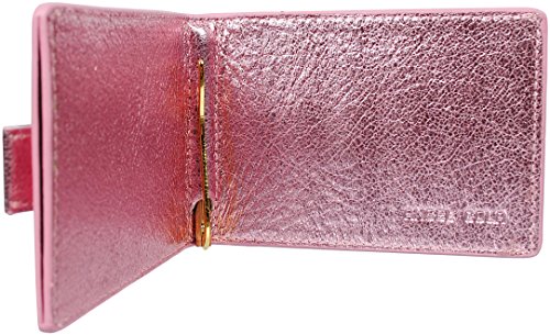 Angel Cola Metallic Leather Slim Bifold Money Clip Wallet