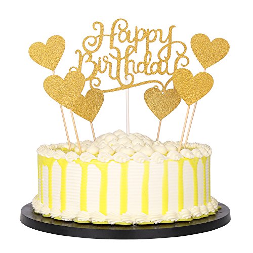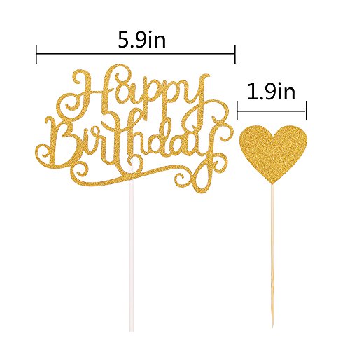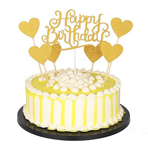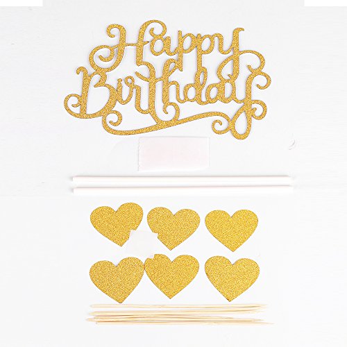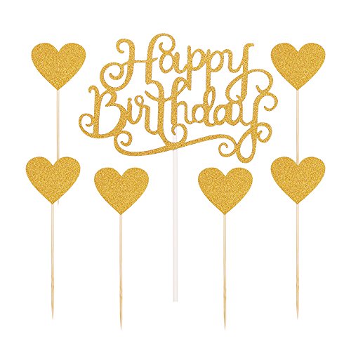 PALASASA Gold glitter Happy Birthday Cake Topper and love star ,Party Event Decorations set of 7
