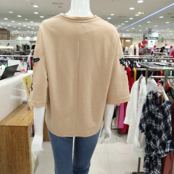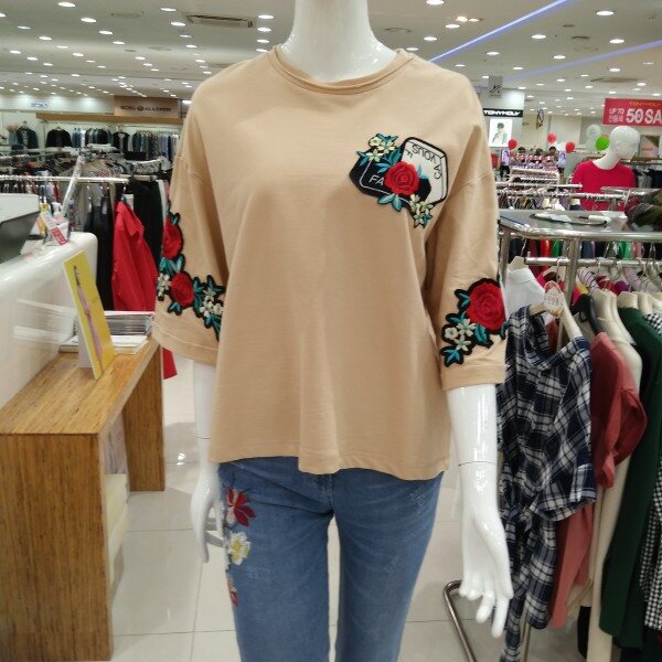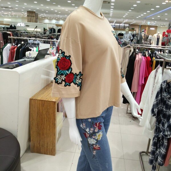 면100% 티셔츠에 자수가 놓여져 한층 고급진느낌에 화사한 꽃그림이 시선을 끌어 예쁘고 귀엽게 연출할수 있는 패션아이템
